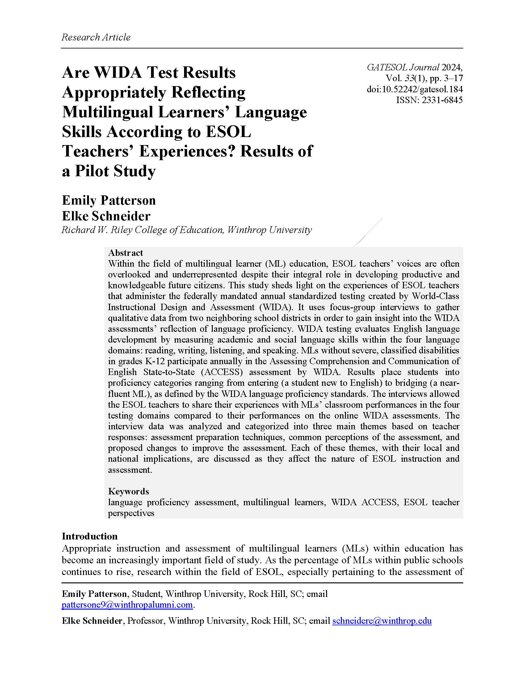 Are WIDA Test Results Appropriately Reflecting Multilingual Learners’ Language Skills According to ESOL Teachers’ Experiences?